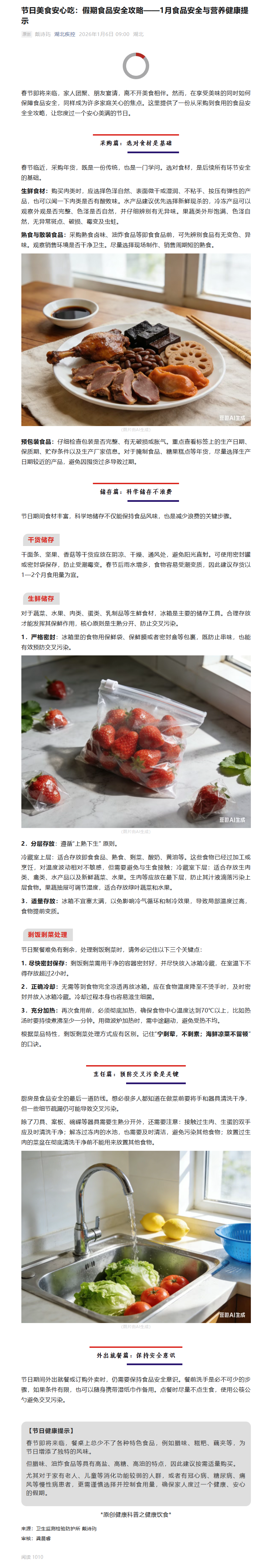 节日美食安心吃:假期食品安全攻略——1月食品安全与营养健康提示