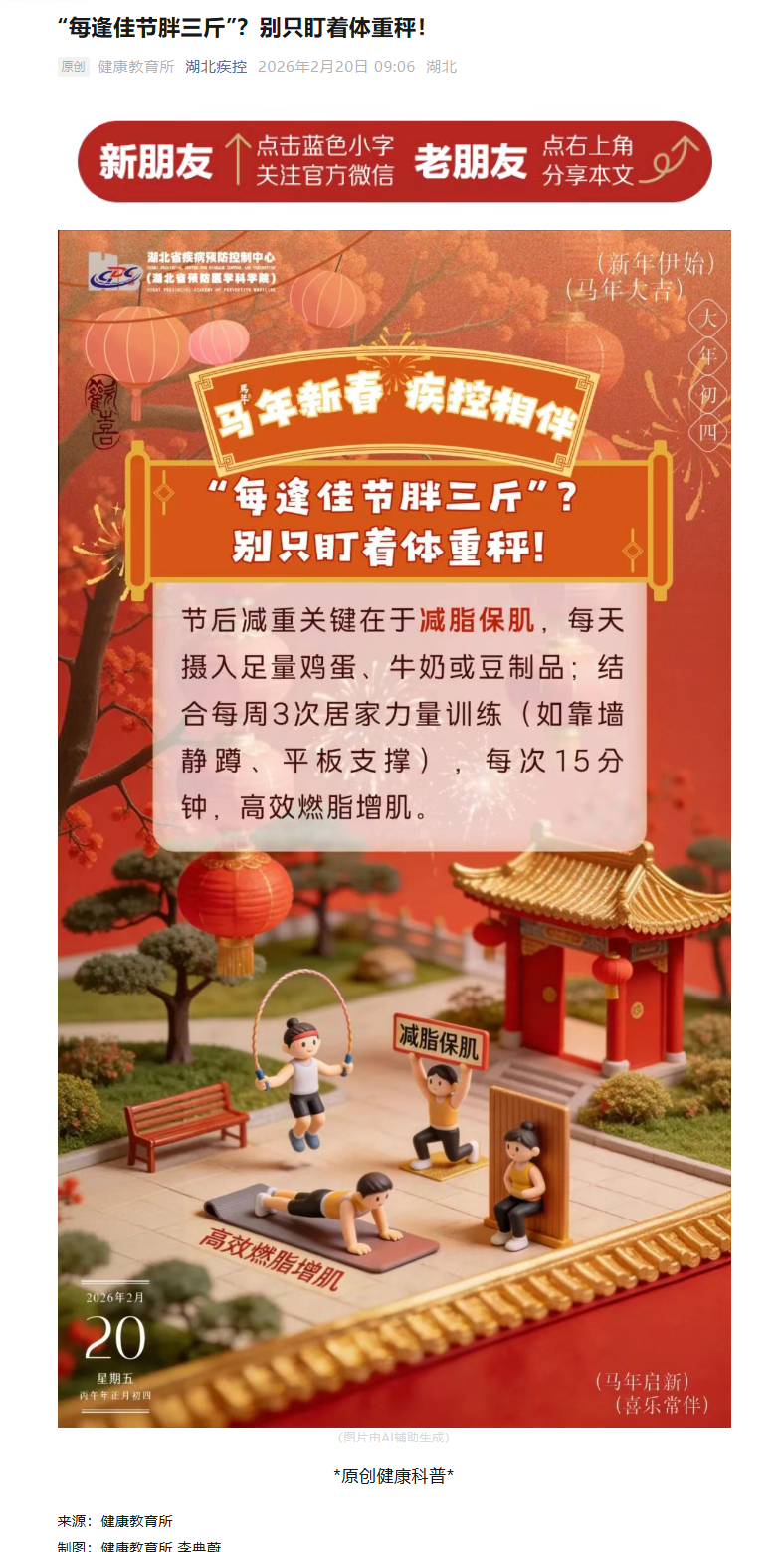 湖北疾控2026年2月春节假期期间健康防护提示