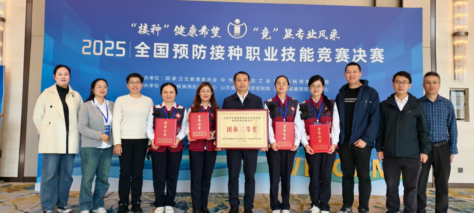 11月11日至12日,由国家卫生健康委、中华全国总工会、国家疾控局联合主办的2025年全国预防接种职业技能竞赛决赛在山东青岛举行。全国31个省(自治区、直辖市)及新疆生产建设兵团共32支队伍、128名参赛队员同场竞技。经过激烈角逐,湖北代表队凭借扎实的专业知识和技能,最终脱颖而出,荣获团体三等奖(全国第9名)和4项个人奖的优异成绩,展现了荆楚预防接种队伍的过硬实力。